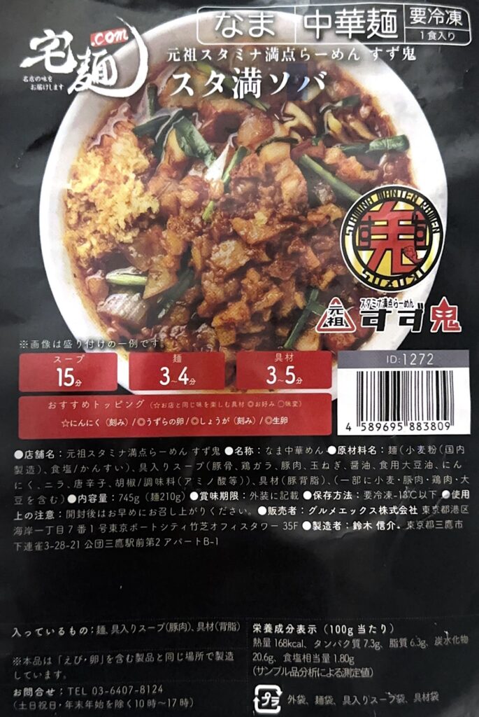 今回注文したのは、三鷹の人気店「元祖スタミナ満点らーめん すず鬼」のスタ満ソバ。宅麺.comの総合ランキングで堂々の1位を獲得していたこともあり、迷わずチョイスしました。実は我が家では、子どもが生まれて妻が育休に入るたびに宅麺.comを利用しており、これまでに「中華蕎麦 とみ田 つけめん」「俺の生きる道 白山店 夢のラーメン」「すごい煮干ラーメン凪」など、名だたる名店の味を楽しんできました。