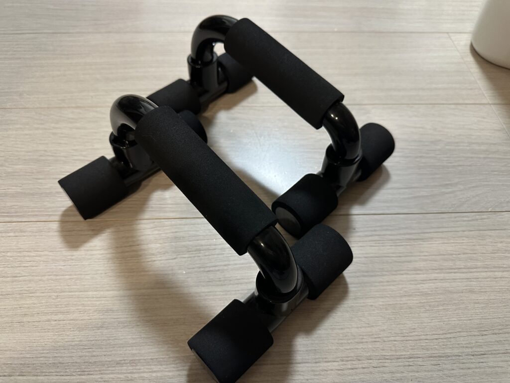 ただ普通の腕立て伏せでは手首に負担がかかりやすいので、プッシュアップバーを使って実践することにしました。これにより可動域が広がり、大胸筋や上腕三頭筋にしっかり効くそうです。